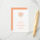 Peach and white information card with solarium sea shell at center.