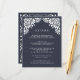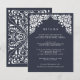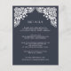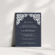Conçue pour coordonner avec notre collection de mariages Beaux-Arts à Ink, cette carte d'information chic vous offre une bordure haut de gamme de détails de style découpé en blanc, surplombant vos principaux détails de mariage, tels que les chambres d'hôtel, les informations de bienvenue à la réception, le site Web et plus encore. Ajoutez votre texte personnalisé à l'aide des champs fournis et utilisez la fonction Personnaliser pour ajuster les polices, les tailles et l'espacement.
