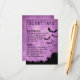 Carte d'information Halloween avec chauve-souris sur un arrière - plan violet et un fond noir grunge. Vous pouvez modifier les polices et tout le texte. Vous pouvez déplacer, réduire la taille ou supprimer les chauves-souris et le cadre noir inférieur.