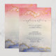 Belle élégante carte d'information de mariage moderne à l'aquarelle avec police de calligraphie manuscrite. L'aquarelle passe du rose au bleu avec une finition lavis qui a un léger effet ombré. Présentant des veines de marbre doré fausses en haut et en bas. La police peut être personnalisée par style ou couleur.