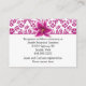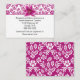 Jolie carte d'information mariage, avec un rose violet sur motif damassé floral blanc, sur le dessus et couvrant le dos, et un joli fleur de lys stargazer, sur le devant supérieur. La zone de texte blanc, a le texte noir prêt à personnaliser pour votre journée spéciale. Des produits correspondants sont disponibles.