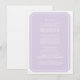 Moderne et chic Simply Elegant Wedding Info/Directions Card avec un design élégant d'emblème de ticket lavande. Ce design classique et élégant est facile à customiser avec vos détails mariages. Pour plus d'options de personnalisation, cliquez sur Personnaliser.