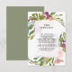 Carte d'information sur les détails du mariage avec fleurs et verdure avec des accents de rose et de violet. Utilisez cette jolie carte coordonnée pour ajouter des informations importantes pour vos invités de mariage. Facile à éditer les champs de texte pour répondre à vos besoins personnels. Vous pouvez changer les polices et les tailles de police. Articles assortis disponibles dans cette collection, veuillez visiter ma boutique pour voir la gamme complète. Les articles comprennent des autocollants, des étiquettes d'enveloppe, des invitations et des cartes de réponse.