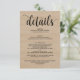 Carte d'information sur les détails du mariage à la ferme rustique