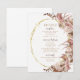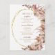 Cette carte d'information sur les détails du mariage à thème bohème présente des aquarelles vaporeuses d'herbe de pampa dans des tons rose poussiéreux et des sous-tons chocolat subtils. Des roses de crème sucrée accentuent le cadre ovale à paillettes dorées, créant une présentation élégante pour vos invités. Conçue pour se coordonner avec notre collection de mariage Boho Pampas Grass. Personnalisez tous les détails importants de votre jour de mariage en ajoutant des informations sur la réception de mariage, l'hébergement et tout autre détail.