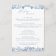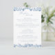 Cette carte élégante de détails de mariage, inspirée à la fois du design toile et du chinoiserie, présente un délicat motif de vigne de rose grimpante bleue encadrant les bords. Elle fournit des informations essentielles pour les invités, y compris les détails de la réception, les hébergements et les options de transport. Parfaite pour les thèmes de mariage botaniques vintage, de jardin ou romantiques, cette carte allie une sophistication intemporelle à une fonctionnalité pratique. Conçue pour compléter toute suite de papeterie de mariage élégante, elle ajoute une touche raffinée et gracieuse à votre célébration.