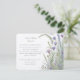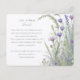 Cette élégante carte d'information de mariage présente un design de jardin d'herbes serein, parfait pour les couples qui planifient un mariage inspiré par la nature. La carte met en valeur une délicate illustration à l'aquarelle de fleurs sauvages en fleurs, y compris de la lavande, de la sauge et des fleurs roses douces, le tout sur un fond blanc immaculé. Le style artistique rappelle les illustrations botaniques, avec des détails complexes qui apportent une touche de charme vintage. La palette de pastels doux de lilas, de lavande et de sauge ajoute un effet doux et apaisant, faisant de cette carte un choix idéal pour partager des détails supplémentaires sur le mariage avec vos invités de manière élégante et cohérente.