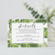 Elégante calligraphie Carte d'information avec cadre feuille tropical branché. Utilisez-le pour les détails et la direction, l'hébergement ou plus. Il fait partie de la collection tropicale de mariage élégant!