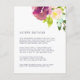 Conçues pour s'adapter à notre collection de faire-part de mariage Fleur Vibrant, ces élégantes cartes florales présentent un bouquet de roses et de pivoines aquarelles dans des tons riches et colorés de violet violet, rose et vert. Vous vous demandez quelles informations inclure sur un encart faire-part de mariage ? Prenez en compte des détails comme l'hébergement à l'hôtel, les codes de groupe, le transport, l'itinéraire, les informations sur la réception de bienvenue et votre URL du site Web mariage. Vous pouvez même télécharger une carte vers l'envers à l'aide de la fonction Personnaliser.
