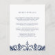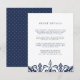 Conçue pour s'harmoniser avec notre collection de faire-part de mariage d'inspiration marocaine, cette carte simple et chic présente du lettrage bleu marine accentué d'une frontière géométrique marine et blanche complexe le long du fond. Remplacez l'exemple de texte par les détails clés de votre célébration mariage. Vous vous demandez quelles informations inclure sur un encart faire-part de mariage ? Prenez en compte des détails comme l'hébergement à l'hôtel, les codes de groupe, le transport, l'itinéraire, les informations sur la réception de bienvenue et votre URL du site Web mariage. Vous pouvez même télécharger une carte vers l'envers à l'aide de la fonction personnaliser it. Vous avez besoin d'aide pour le libellé ou la mise en forme? J'adorerais aider ! Contactez Kristen via le lien "Demandez à ce concepteur".