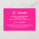 Il s'agit d'une carte de détails mariage audacieuse et moderne, avec une belle police de calligraphie et un arrière - plan rose chaud. Toutes les couleurs sont modifiables. // Pour les designs correspondants, recherchez "FALLON" dans le magasin Sincerely By Nicole Zazzle. * Si vous aimez ce design mais ne le voyez pas disponible pour quelque chose que vous cherchez, n'hésitez pas à me contacter :)