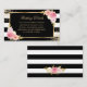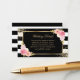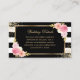 Elégante carte à mariages rayés noir et blanc avec aquarelle rose vif, ivoire et pêche et verdure dorée. Éléments correspondants disponibles.
