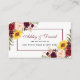 Elégante aquarelle Floral Mariage Registry Insert Card comprend des roses de marsala bordeaux, roses roses roses, roses rouges, tournesols et verdure botanique.