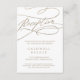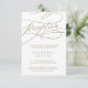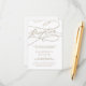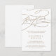 Cette carte d'encart de réception en calligraphie dorée romantique est parfaite pour un mariage simple. Le design classique moderne comprend des tourbillons fantaisistes et des fleurs fantaisistes avec une magnifique typographie de feuille d'or en faux champagne. Personnalisez cette carte détaillée de boîtier avec vos informations de réception et incluez également votre adresse de site mariage ! Remarque : Ce design ne comporte pas de véritable feuille d'or. C'est un graphisme de haute qualité fait pour ressembler à du papier doré.
