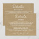 Carte d'insertion de détails mariage | Rustic Country Kraft