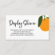 Une carte d'encart de douche pour petit baby shower à thème d'agrumes mignons. Avec une petite clémentine et un poème d'orange cuite : "Votre beau cadeau sera mis en exposition afin qu'aucun besoin d'envelopper d'aucune manière. Un cadeau non emballé est tout aussi sucré, et permettra de gagner plus de temps pour se mélanger et manger."