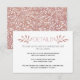 Cette carte d'insertion de mariage tendance met en valeur de belles branches avec des feuilles en paillettes de faux or rose et votre texte. Le dos est recouvert d'un motif composé de feuilles blanches sur fond de paillettes d'or rose.