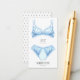 Lingerie carte insert avec soutien-gorge féminin et culotte en bleu frileux. Customiser avec les mesures de sous-vêtement de la mariée. Envie d'invitations à la fête de bachelorette pour demander aux filles d'apporter à la mariée quelque chose de spécial pour la lune de miel.