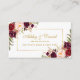 Carte d'insertion d'aquarelle mariage Floral Bourgogne et d'or