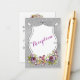 Cette carte d'enceinte de réception de mariage fleurie couleur prune violet, blanc et gris argent FAUX possède une zone de texte dessinée à la main et dessinée en noir avec des fleurs assorties de couleur d'eau dans différentes nuances de rose, violet, pêche avec des feuilles vert olive et jaune or sur le fond de la carte qui sont également soulignés en noir. Si vous avez besoin d'éléments correspondants dans cette conception, ou si vous avez besoin d'aide pour la customiser avec vos informations, envoyez un courriel à niteowlstudio@gmail.com. ****VEUILLEZ NOTER que tout sera imprimé tel qu'il apparaît sur votre écran.
