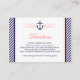 Préppy mode mariage moderne insérer design carte avec ancre nautique graphique et élégant défilement de calligraphie fleurit sur un arrière - plan motif à bande diagonale tendance. Cliquez sur le bouton CUSTOMISER IT pour customiser les polices, déplacer du texte et créer votre propre conception unique d'invitation unique.