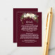 Aquarelle d'ivoire Floral Crest Burgundy Mariage design carte. Il présente de magnifiques pivoines d'ivoire imitant crête d'or, bouquet, ou séparateur sur arrière - plan bordeaux. Utilisez l'outil Personnaliser pour ajouter vos informations. Pour les articles correspondants, s'il vous plaît, visitez ma Collection de Bourgogne florale d'ivoire.