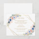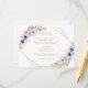 Mariage moderne détails carte, floral & géométrique.Dans les couleurs Or, Peaches & Bleu.