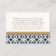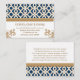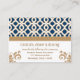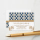 Elégante et belle carte de mariage marocaine d'inspiration baroque française avec une teinte saphir bleu marine et or géométrique design motif et fleuris dorés hués or. Cette carte haut de gamme et luxueuse est parfaite pour une mariage à thème marocaine, arabe ou aladdin. L'avant et l'arrière de ces personnages, les cartes de réception peuvent être personnalisées avec vos coordonnées de réception de mariage. Oeuvre et design © Chrissy H. Studios, LLC. Tous droits réservés.