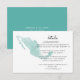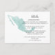 Cette carte de détails présente une carte aquarelle du Mexique avec un petit coeur sur Los Cabos. Le mot "détails" est dans une police de style cursive. Toutes les informations sur l'hébergement sont en noir et comprennent un endroit pour ajouter les informations de votre site mariage. Le dos de la carte a un arrière - plan vert aqua avec le nom de la mariée et du marié et la date du mariage en blanc. Cette conception est en coordination avec les autres produits de la collection Mariage Mexico Map.