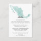 Cette carte de détails présente une carte aquarelle du Mexique avec un petit coeur sur Los Cabos. Le mot "détails" est dans une police de style cursive. Toutes les informations sur l'hébergement sont en noir et comprennent un endroit pour ajouter les informations de votre site mariage. Le dos de la carte a un arrière - plan vert aqua avec le nom de la mariée et du marié et la date du mariage en blanc. Cette conception est en coordination avec les autres produits de la collection Mariage Mexico Map.