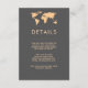 Cette carte d'information mariage moderne et chic présente un arrière - plan gris fumé avec une carte du monde orange et un texte assorti. Parfait pour le mariage de tout couple qui aime voyager, ou toute personne ayant un mariage de destination. Vous pouvez utiliser ces cartes pour inclure des informations sur votre réception de mariage, les itinéraires, l'hébergement et tout ce que vous devez savoir à vos invités!