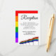 Cette belle carte d'enceinte de réception de mariage facilitera l'obtention par vos invités de toutes les informations dont ils ont besoin au sujet de votre réception de mariage. Conçu dans le cadre de notre Suite Gay pride Rainbow Mariage, il dispose de texte arc-en-ciel avec drapeaux gay pride.