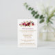 Cette belle aquarelle bordeaux fleurons et plumes mariage hébergement carte insert dispose de bordeaux, crammson, aubergine, marsala, et crème roses ou pivoines avec feuilles verts et branches dans les tons vert olive, rouille, orange brûlé et marron, ainsi que des plumes colorées assorties en orange, violet, gris et noir. Le libellé personnalisable est dans une palette de couleurs or et bordeaux et le fond a un motif de bouquets dans les mêmes couleurs.