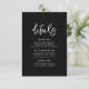 Carte d'information des clients mariages : n'oubliez pas cette carte utile avec tous vos détails mariages importants comme l'emplacement, l'hébergement, le transport, etc... Une typographie audacieuse et tendance pour votre papeterie mariage, simple mais élégante avec un thème noir et blanc. Entièrement personnalisable : vous pouvez modifier les couleurs de la police et de l'arrière - plan si nécessaire.