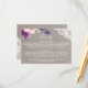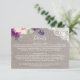 Ce pourpre fleurit et la carte d'insertion de détails de mariage de dentelle est parfaite pour un mariage campagnard. Les caractéristiques de conception chics rustiques une belle disposition de pourpre de prune, lilas et rougissent les fleurs roses avec la dentelle florale blanche sur un arrière - plan de toile élégant.