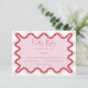 Conçue pour coordonner avec notre collection Wavy Border, cette carte RSVP moderne présente la bordure ondulée tendance et populaire en rouge sur arrière - plan blanc. Si vous voulez attirer l'attention de votre client avec une pop de couleur sur votre invitation branchée, cette suite est parfaite pour vous. Pour une personnalisation plus avancée de cette conception, par exemple la modification de la disposition, de la police ou de la taille du texte, cliquez sur le bouton "PERSONNALISER" ci-dessus. Veuillez me contacter pour toute question !