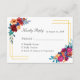 Nous aimons les couleurs vives et les designs audacieux, alors nous voulions quelque chose qui serait fantaisiste mais encore assez classe pour un mariage. Cette carte RSVP avec choix de menu offre une abondance de fleurs colorées et de typographie moderne sur un arrière - plan blanc pour un look floral sophistiqué - qui s'adapterait à un mariage printemps/été.