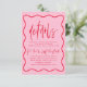 Il s'agit d'une carte de détails mariages audacieuse et moderne, avec une belle police calligraphique et des teintes rose et rouge. Toutes les couleurs sont modifiables. // Pour les designs correspondants, recherchez "DELILAH" dans le magasin Sincerely By Nicole Zazzle. * Si vous aimez ce design mais ne le voyez pas disponible pour quelque chose que vous cherchez, n'hésitez pas à me contacter :)