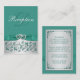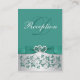 Cette carte d'enceinte à fleurs turquoise vert et gris argenté, élégante et romantique, monogrammée, possède un ruban et un arc IMPRIMÉS, avec une paire de bijoux en diamant IMPRIMÉS et une parties scintillant simulée FAUX joints à coeur broche qui correspond aux invitations de mariage ci-dessous. Vous pouvez également customiser qu'il s'agit d'une carte d'itinéraires, d'une carte d'hébergement, d'une carte d'enregistrement de cadeaux, d'une carte de site Web mariage, d'une carte de bien ou de bienfaisance, ou d'une carte d'information générale en modifiant le texte en conséquence. S'il y a d'autres articles correspondants dont vous avez besoin, veuillez envoyer votre demande par courriel à niteowlstudio@gmail.com.