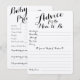 Qu'est-ce qui pourrait être plus spécial pour une future maman que d'avoir ses amis et sa famille les plus proches écrivent leurs souhaits et prédictions pour son nouveau bébé ? La carte Conseils et Prédictions Double Côté est l'activité parfaite pour un baby shower, et fait un beau gardien pour la future maman. Les clients peuvent remplir un côté avec leurs meilleurs conseils pour les nouveaux parents, et de l'autre partager leurs prédictions pour le sexe du bébé, la couleur des yeux, et plus encore. Ce saké doux peut être ajouté à un livre de mémoire de bébé ou lié avec un clip d'anneau, ce qui en fait quelque chose que la mère chérira pour toujours. La meilleure partie est que vous pouvez pleinement customiser n'importe quel texte pour vraiment en faire le vôtre ! Alors qu'attendez-vous ? Commandez aujourd'hui !
