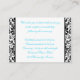 Cette carte damassée en noir et blanc comprend un ruban bleu aqua IMPRIMÉ qui serait parfait pour un mariage à thème aqua et noir. Certains papiers modifieront la couleur de la conception, donc soyez prudent si vous choisissez l'un des types de papier en plus du blanc de base indiqué ici. DE PLUS, si vous redimensionnez la carte, ou si vous changez de polices, ou la taille de la police, une partie de la conception et/ou du texte peut être coupée. Tout va s'imprimer comme vous le voyez sur votre écran. Je ne verrai pas votre carte, et Zazzle ne corrigera rien (fautes de frappe, mauvais alignement, etc.). Le texte et le papier sont tous personnalisables. Si vous avez besoin d'aide avec cette carte, envoyez-moi un courriel AVANT de passer votre commande. Si vous avez besoin d'autres articles correspondants, veuillez envoyer votre demande par courriel à niteowlstudio@gmail.com