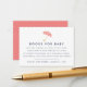 Faites glisser ces petites cartes dans vos invitations pour les douches pour bébés lorsque vous demandez des livres au lieu de cartes. Le design moderne présente des lettres bleu marine avec une petite illustration de parapluie couleur rose corail en haut. Un poème sucré explique la demande de livre : "juste une demande, nous espérons que ce n'est pas difficile // S'il vous plaît apporter un livre au lieu d'une carte // En signant votre nom, nous nous souviendrons et partagerons // votre cadeau sucré, même si vous n'êtes pas là." Personnalisez avec le nom de l'invité d'honneur et la date de la douche le long du fond.