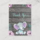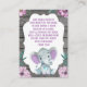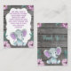 Bibliothèque pour bébé, Réservez la carte de demande pour une Fille de douche éléphant violet, turquoise, turquoise et arachide grise.