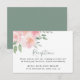 Elégante carte d'invitation de mariage pour vos détails de réception. Cette carte présente un bouquet d'aquarelle de fleurs roses rousses, un script vert sage moderne et élégant qui s'harmonise avec la verdure du bouquet floral, et une typographie simple. Vous pouvez personnaliser le titre ("Réception", "Détails", "Célébration", etc.), vos événements et votre lieu, ainsi que tous les autres détails.