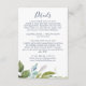 Cette carte d'enceinte de détails de verdure estivale est parfaite pour un élégant mariage du milieu de l'été. Le design botanique présente un agencement luxuriant d'eucalyptus couleur aquarelle peint, de verdure et de feuilles verts avec de subtils ressorts de fleurs roses rousses.