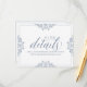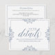 Ces détails de mariage élégants insèrent les coordonnées de la carte parfaitement avec notre suite d'invitation Nadine. La couleur design est définie en bleu poussiéreux (bleu-gris), mais vous pouvez changer la couleur du design en changeant votre couleur arrière - plan. **COMMENT CHANGER VOTRE COULEUR DE CONCEPTION** 1) Cliquez sur le bouton "Personnaliser". 2) Cliquez sur le lien "ClICK POUR CUSTOMISER PLUS LOIN" en bas. Vous aurez alors la possibilité de changer votre "COULEUR ARRIÈRE - PLAN" en votre couleur mariage. N'oubliez pas de modifier votre couleur de texte pour qu'elle corresponde à votre conception.