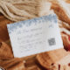 Un mariage chinoiserie détaille la carte de boîtier avec un code QR qui présente de jolis graphismes de toile de jouy avec une palette de couleurs bleu poussiéreux et une police calligraphie. Parfait pour un mariage de printemps ou d'été et vous pouvez l'associer à n'importe quoi dans la collection FLORIA pour un look cohésif.