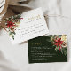 Boho Green Red Gold Pine de Noël Floral Winter Holiday Mariage Détails Carte. Carte Bohème Bohème de style Bohème avec Boho Rustique Berry et Pine Botaniques en Aquarelle imprimée à la main. La couleur arrière - plan verte est magnifique pour les mariages boho et les mariages de Noël. Simple, imprimable Détails Carte pour les mariages de vacances et d'hiver.