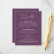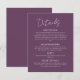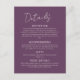 Fournissez à vos invités toutes les informations importantes dans le style avec cette carte gothique Mariage floral violet foncé Grand Détails. Ajouté à la suite gothique de fleurs violettes foncées et violettes, cette carte est conçue pour communiquer les points les plus fins de votre célébration, tout en gardant votre esthétique globale magnifiquement cohésive. Avec un arrière - plan violet foncé et un texte blanc élégant, il capture parfaitement le ton romantique et modu de votre mariage. Que ce soit pour l'hébergement à l'hôtel, les informations sur le transport, les détails du lieu ou votre site Web mariage, cette carte de détails offre beaucoup d'espace pour dire tout ce dont vous avez besoin dans un endroit pratique. La police blanche propre se démarque magnifiquement contre l'arrière - plan riche, assurant la clarté tout en améliorant l'élégance spectaculaire du design. La mise en page comporte un équilibre entre le texte de bloc moderne et les prénoms du couple en écriture gracieuse, ajoutant une touche personnelle et polie. Entièrement personnalisable, cette carte vous permet de personnaliser le contenu, les polices et la mise en page en fonction de vos besoins, que vous soyez hébergé un week-end mariage complet ou que vous souhaitiez simplement inclure des informations de registre et une note de remerciement. C’est un moyen judicieux de faire se sentir informé et accueillant, tout en restant fidèle à votre ambiance sombre et romantique. Dans le cadre de l'ensemble Gothic Dark Purple Floral Mariage Suite, cette grande carte de détails s'associe parfaitement aux invitations, cartes RSVP, programmes, menus, etc. C'est la touche finale parfaite d'un ensemble de papeterie superbement guidée, moderne, gothique, et étonnamment inoubliable.