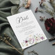 Fleur sauvage Détails Mariage Carte avec typographie élégante Ascensez votre célébration : Mariage Détails Carte de boîtier Enrichissez votre expérience avec notre Mariage Détails Carte de boîtier, ornée du charme intemporel de la verdure d'aquarelle et de l'aquarelle fleur sauvage. Chaque carte est un chef-d'oeuvre, mélangeant harmonieusement style et substance pour guider vos proches à travers les subtilités de votre journée spéciale. L'écriture gracieuse apporte une touche de sophistication, assurant que chaque détail, du lieu à l'horaire, est présenté avec une esthétique raffinée. Choisissez l'élégance ; choisissez l'art de la typographie noire et de la verdure aquarelle et de l'art fleur sauvage pour raconter l'histoire de votre célébration. Séduisez vos invités et donnez le ton pour une journée extraordinaire. Le Mariage Details Enclôture Card — où chaque mot est une invitation à se livrer à la beauté et à la grâce qui définit votre union.